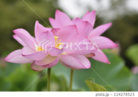 夏の朝に咲くピンクの蓮
