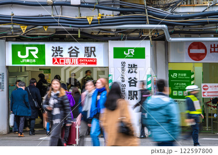 日本の東京都市景観移転ハチ公改札…新出入口は…観光客らで賑わう渋谷駅…=令和7年2月4日