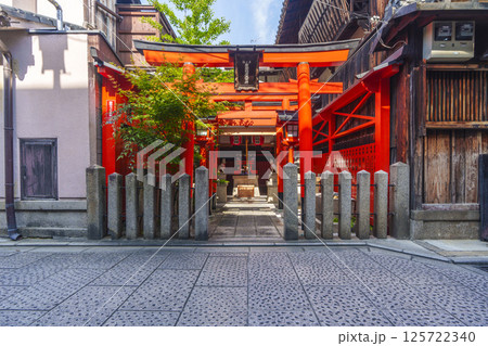 京都祇園 有楽稲荷大明神(織田稲荷)と祇園の街並み