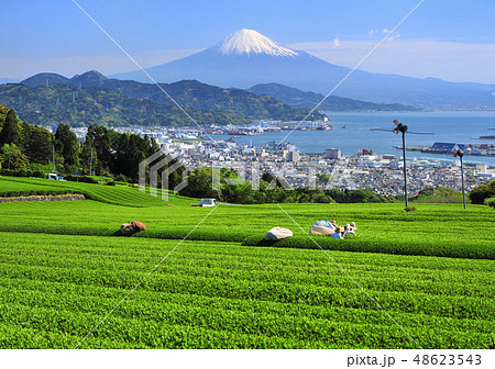 静岡県静岡市の日本平から新緑のお茶畑と富士山