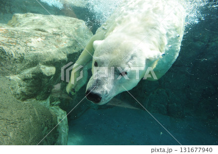 日本平動物園で泳ぐホッキョクグマ