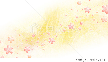 明るい金色の筆跡が交差する和風抽象背景・青海波入り|金色 筆跡 青海波