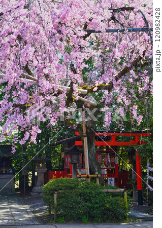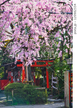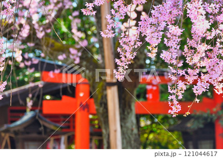 水火天満宮 鳥居と美しい枝垂れ桜(京都府京都市上京区)