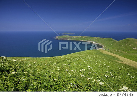 礼文島スコトン岬とオオハナウドの白い花(北海道礼文町)