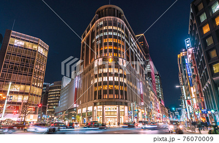 東京 中央区 日本橋の都市風景 三井本館の夜景