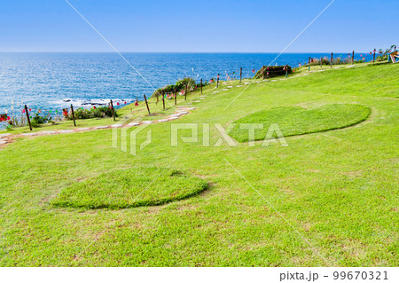 恋人岬 柏崎市 芝生に浮き出たハート型