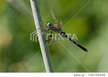 枝に止まるアカネ属のトンボ ノシメトンボ♂