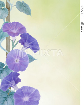 日本画風 鉢植え朝顔 暑中見舞い 背景イメージ 緑