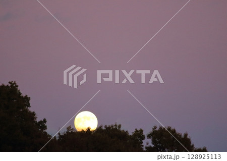 林の向こうに沈む満月