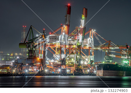 製鉄所と貨物船 夜景