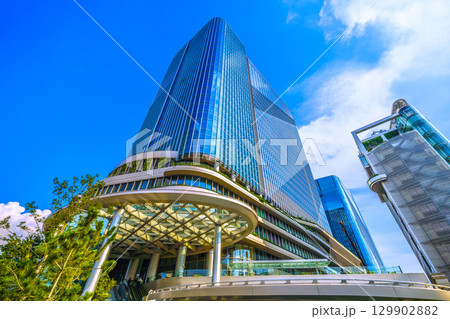 日本の東京都市景観 8月。猛烈な暑さ、発達した雲が高輪ゲートウェイシティ上空や左下奥に…=21日