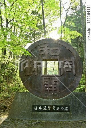 「和同開珎」のモニュメント(埼玉県秩父市黒谷)