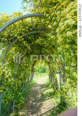 初夏の日差しに輝くツル薔薇 兵庫県芦屋市芦屋浜にて