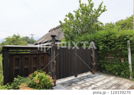土居廓中の伝統的建造物群保存地区内の南北の路沿いの北町付近の茅葺の民家