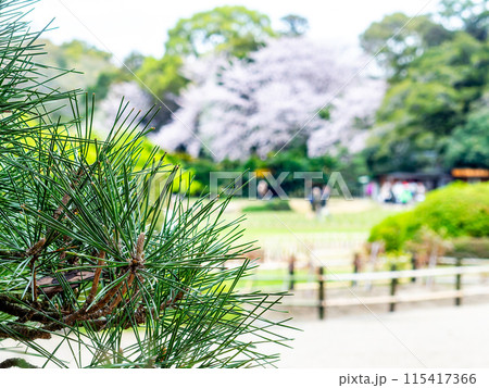 春の岡山 後楽園の趣深い景色 新緑の松葉