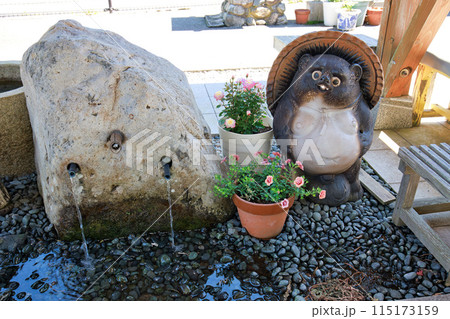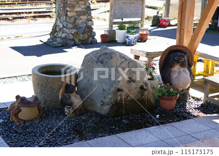 〈島根県〉出雲坂根駅 延命の水と狸の置物