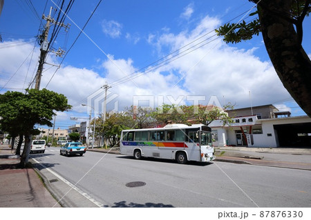 沖縄 名護 名護の街並みと路線バス