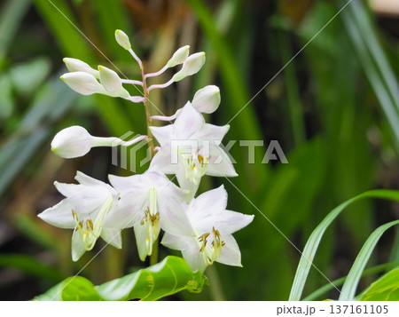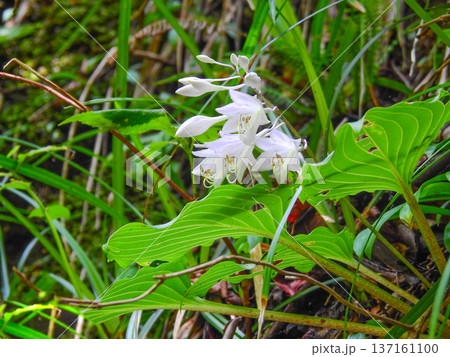 キジカクシ科の多年草白い花が咲いたギボウシ