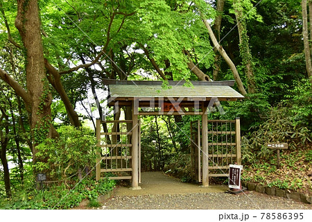 神奈川県立大磯城山公園 旧三井別邸地区西門と深緑