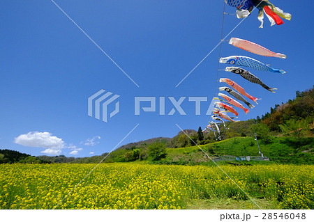 北アルプスと鯉のぼりと菜の花畑(縦)