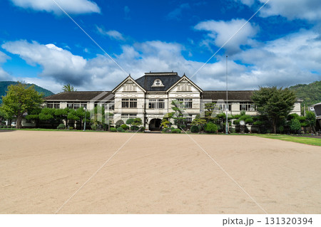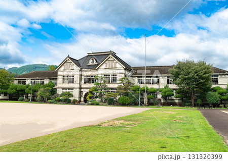 夏の朝の旧遷喬尋常小学校 岡山県真庭市
