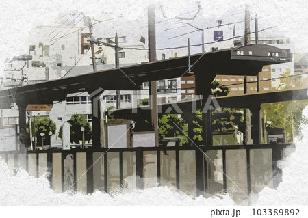 水彩画風 長崎 出島停留場 長崎県長崎市