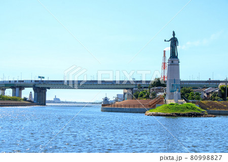 旧堺港と龍女神像の景色