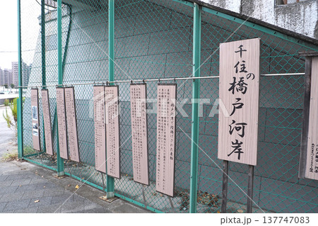 千住大橋下 千住の橋戸河岸の看板(東京都足立区)