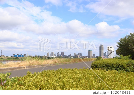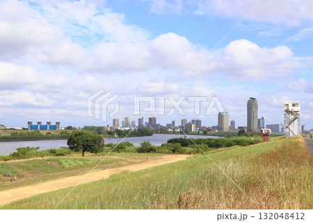 初夏の荒川と芝川の合流付近(東京都足立区:都市農業公園)