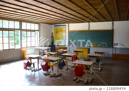 備中吹屋の町並み 吹屋ふるさと村 旧吹屋小学校教室(校舎内)