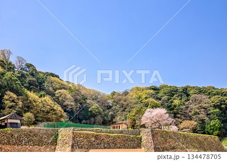 〈鳥取県〉米子城跡 二の丸跡の桜と旧小原家長屋門 4月