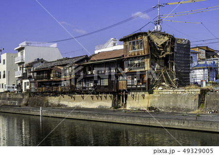 岡山 倉敷市玉島 玉島町並み保存地区 溜川沿いの古い家屋 新港橋近く