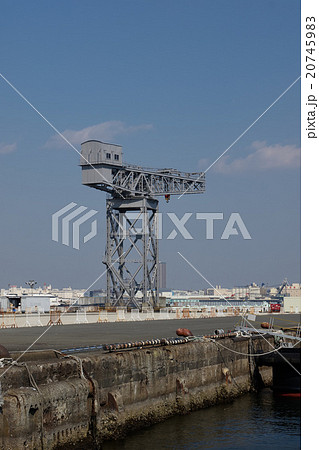 新港埠頭岸壁に建つハンマーヘッドクレーン、横浜(縦構図)