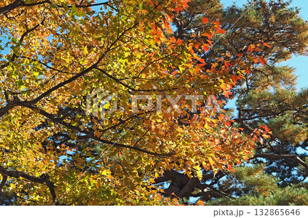 皇居 乾通りの美しい紅葉と青空(東京都千代田区)