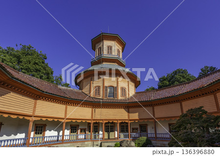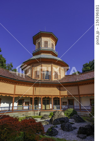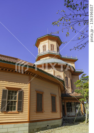 秋の山形県山形市 紅葉の霞城公園 旧済生館本館