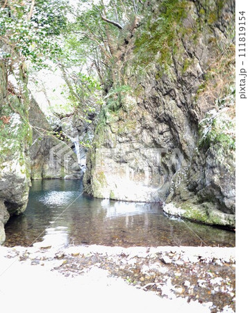 積雪の美霞洞渓谷の雄淵・雌淵【香川県仲多度郡まんのう町】