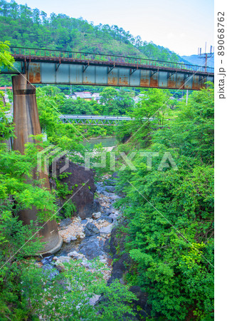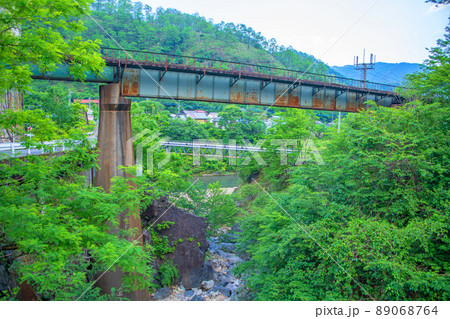 出川橋梁付近の風景 初夏の季節 足尾