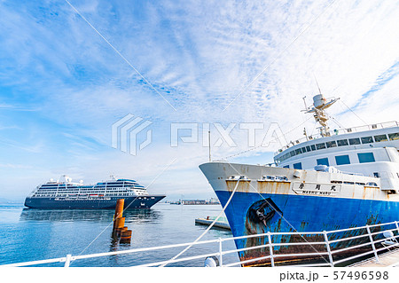 北海道函館 函館湾に入港するクルーズ船