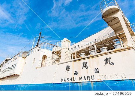 冬の北海道函館市函館港で旧青函連絡船摩周丸の風景を撮影