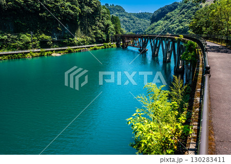 旧高千穂鉄道の第三五ヶ瀬川橋とダム湖