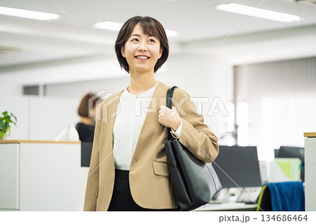 会社に出勤するミドル世代の女性