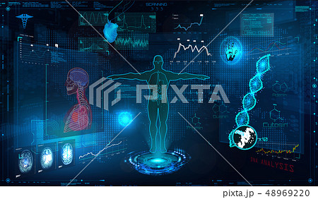 Visual effects of MRI or CT scanning female patient brain and body