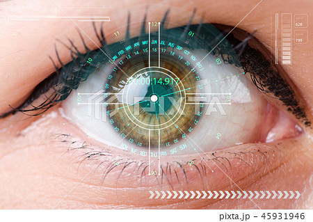 Technological scanning of face of young woman.