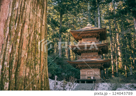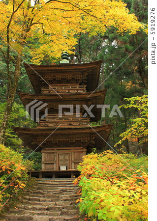 光前寺 改修工事の終わった三重塔 長野県駒ケ根市