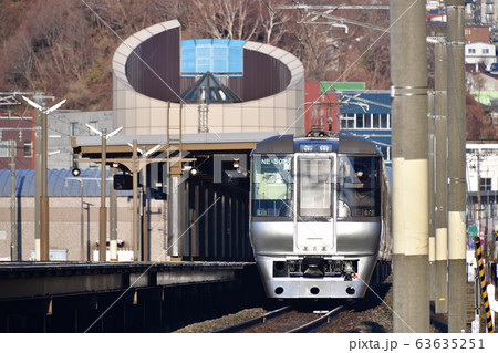 早春の北海道室蘭市JR室蘭駅を出発する特急すずらんの朝の風景を撮影