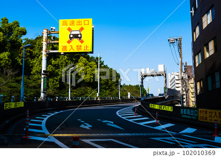 高速出口 進入禁止 首都高速5号線早稲田出口 2023.04 高彩度コントラスト
