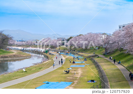 春の旭川河川敷の風景1 岡山県岡山市北区