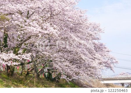 陽春の頃 桜並木とぼんぼり 岡山県真庭市「久世トンネル桜
