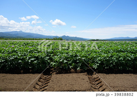 北海道の風景・昆布岳と収穫後のジャガイモ畑