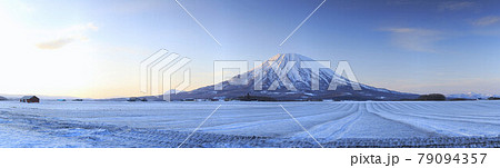 北海道・豊浦町 雪原と冬の昆布岳の風景